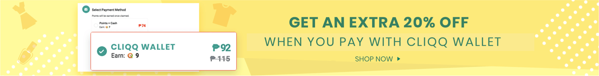 Extra 20% discount when you pay with your CLiQQ Wallet